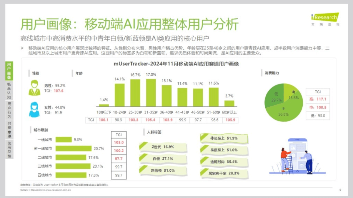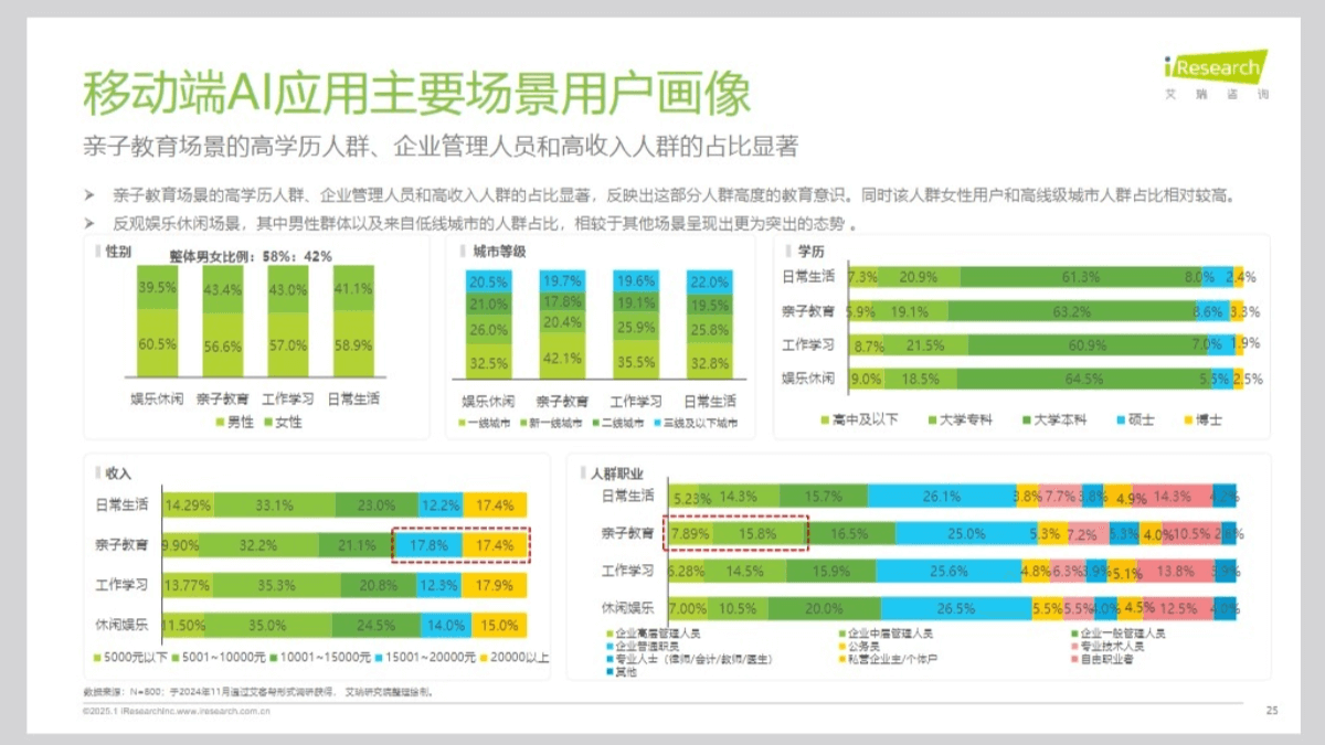 - 场景分布特征:工作学习场景占比最高,亲子教育场景用户活跃度突出。不同场景呈现差异化使用特征。