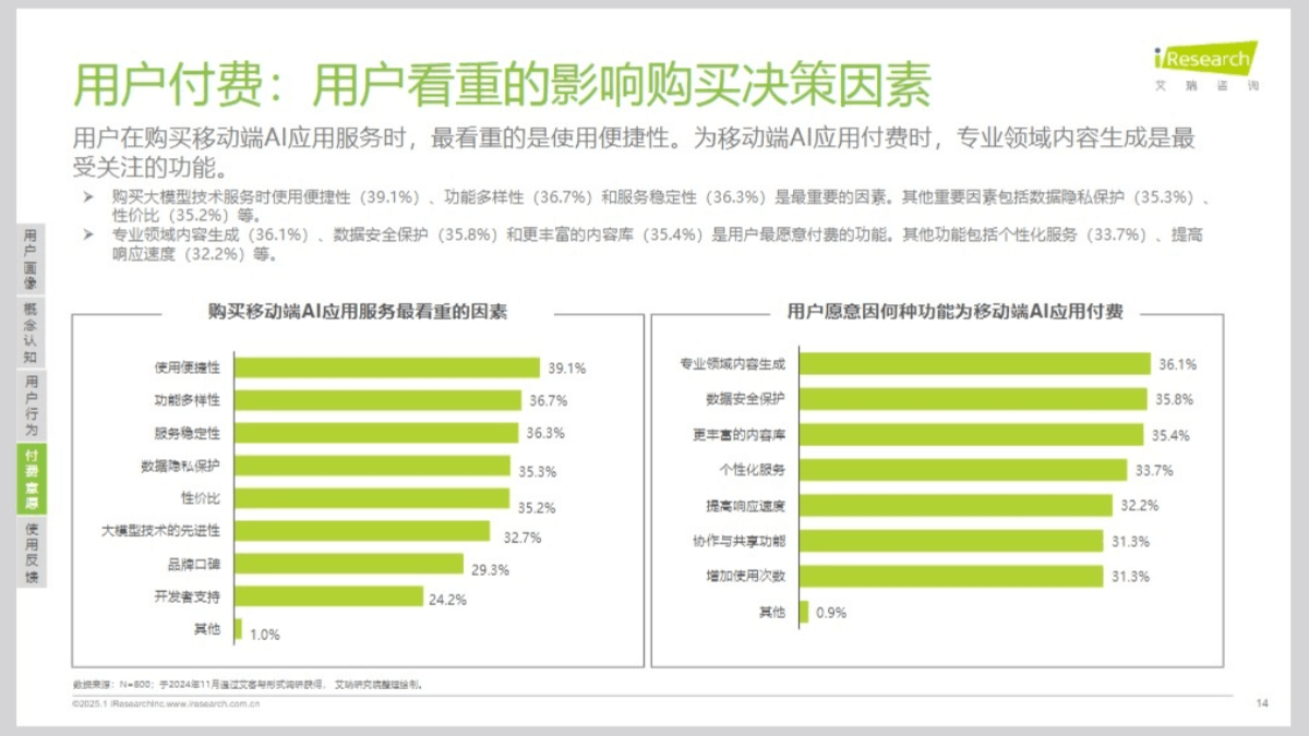 - 付费行为研究:订阅制模式接受度高,数据隐私和功能多样性是决策关键因素。专家助手等高级功能付费意愿显著。