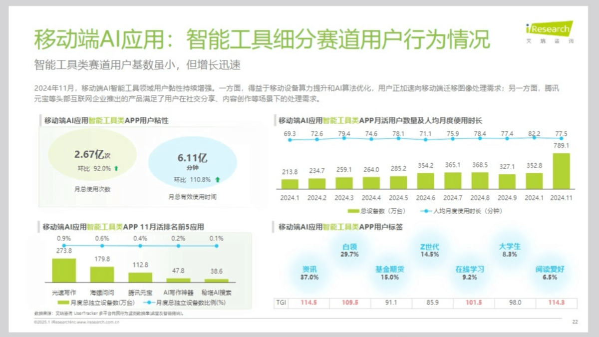 - 智能工具赛道:腾讯元宝等产品虽基数较小,但满足特定场景需求,增长潜力可观。