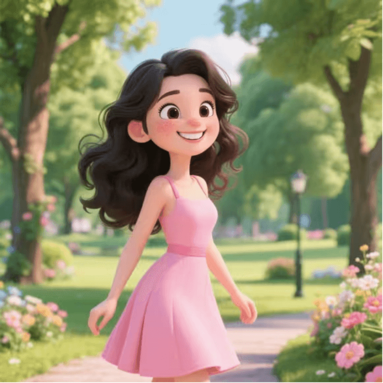 - 女孩穿着时尚的粉色裙子,漫步在公园里,周围绿树成荫,花朵盛开,她时不时停下欣赏风景。