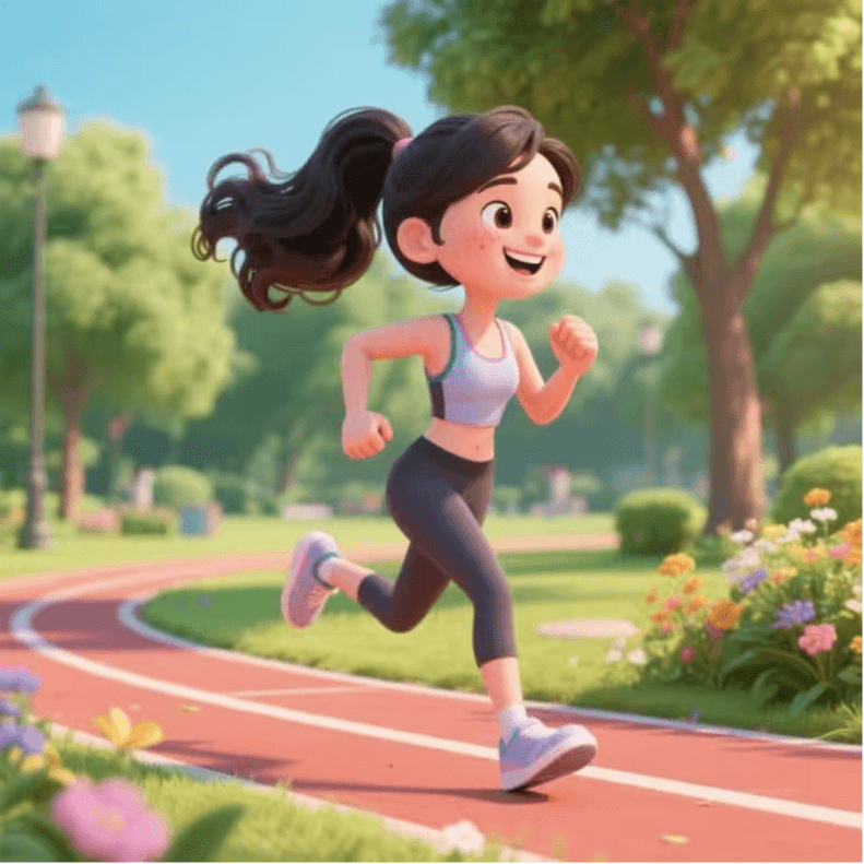 - 女孩换上运动装,在公园里跑步锻炼,她步伐轻盈,充满活力,周围的花草树木仿佛都在为她加油。
