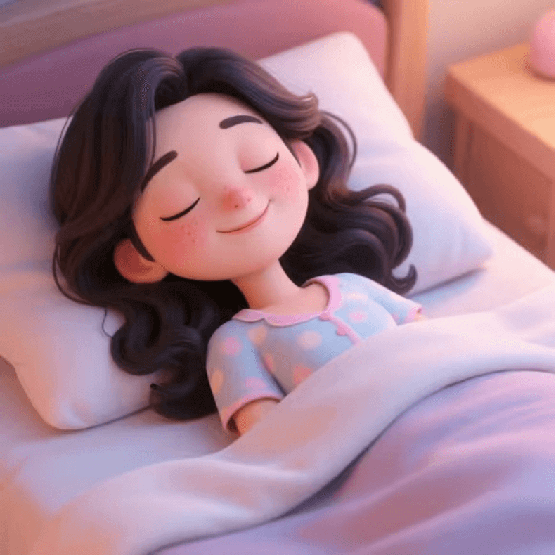 - 女孩回到温馨的家中,换上可爱的睡衣,躺在床上,盖着柔软的被子,很快进入了甜美的梦乡。