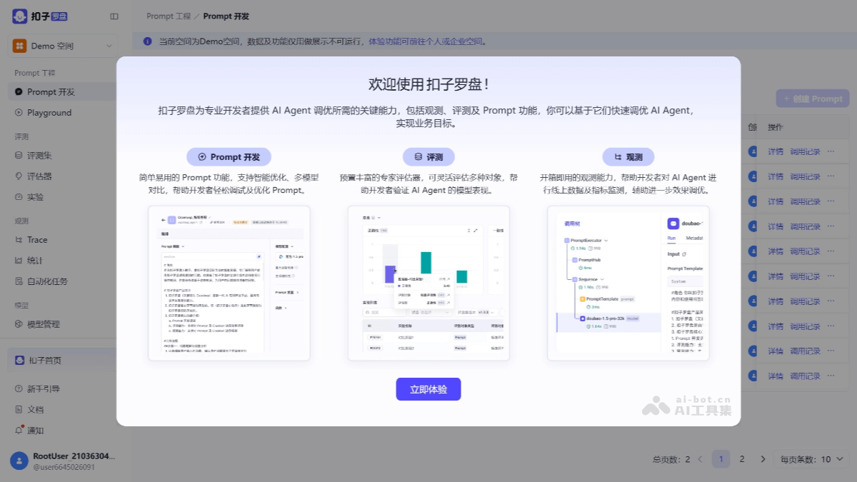 - 提示词工程体系:内置智能编写与调试工具,支持多版本管理和AI辅助优化功能,大幅提升提示词开发效率。