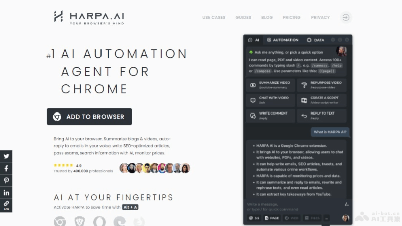 HARPA-AI浏览器智能助手自动处理网络日常任务