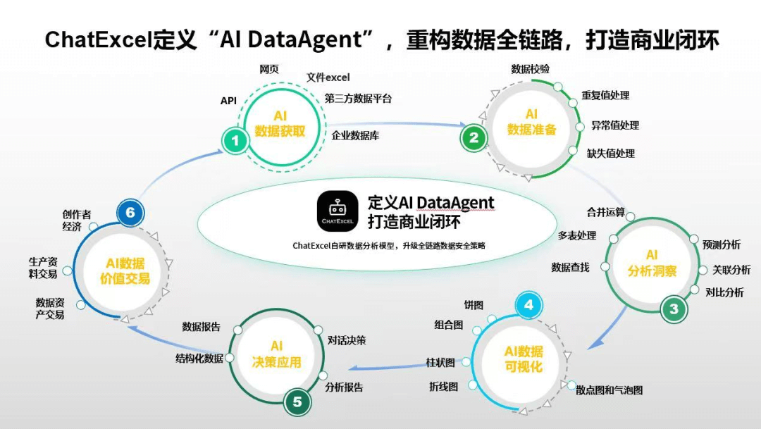 - 差异化定位 区别于WPS等传统工具,定位于数据智能体,构建从数据获取到价值交换的全链路闭环。