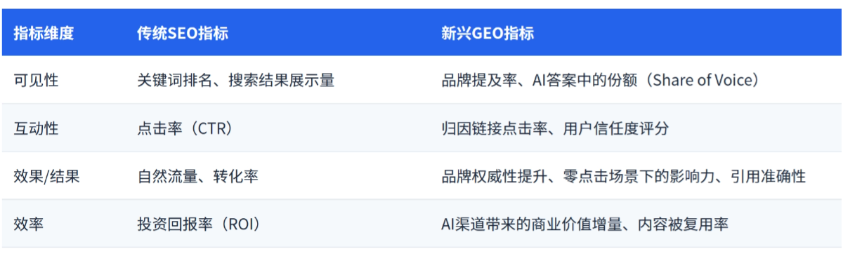 虽然GEO和SEO都致力于提升数字可见性,但二者在多个维度存在显著差异。