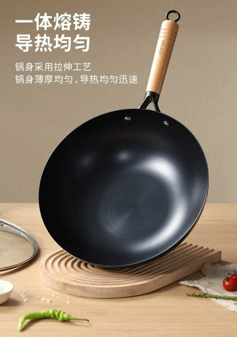 提示词:UGC广告视频。无文字叠加。一个女生手持图中的铁锅,与观众交谈。全程用中文配音