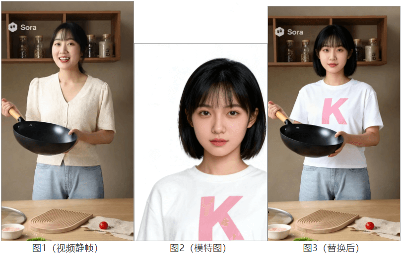 将视频静帧与模特图上传至图像处理平台,输入具体替换要求: