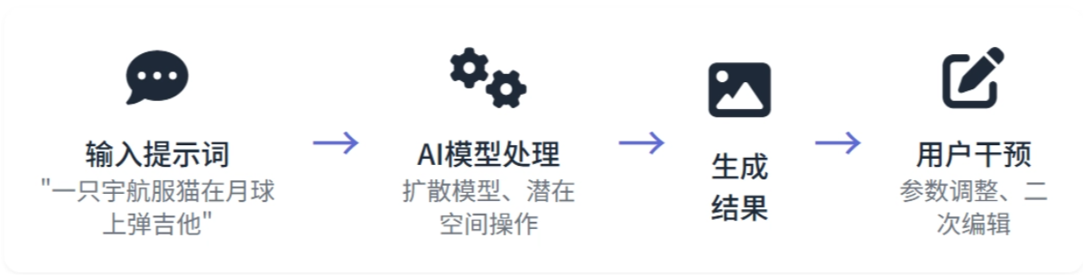- 去噪过程:根据用户指令,从随机噪点中重建出符合要求的清晰图像。