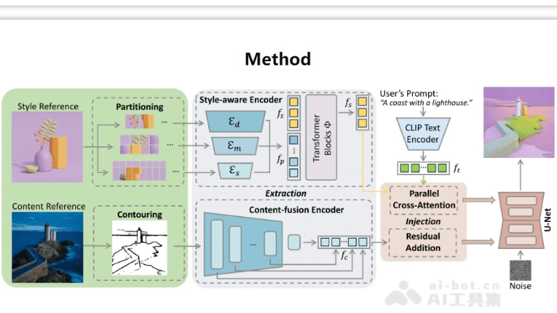 - 特征整合机制:通过交叉注意力模块将风格嵌入和文本嵌入整合,确保生成过程同时考虑风格与内容要素。