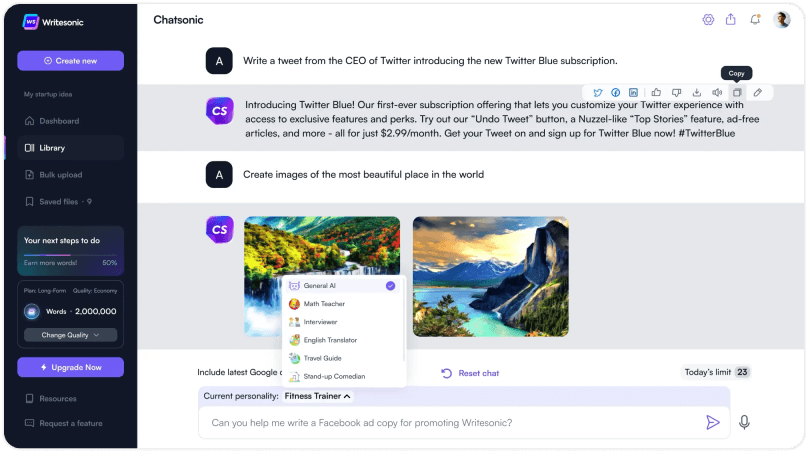 作为Writesonic旗下产品,ChatSonic不仅支持常规对话,还能进行实时数据查询、图像识别和语音搜索。这款AI助手特别适合内容创作,能快速生成各类文案,从广告语到长篇博客都能胜任。其对话体验自然流畅,能深入理解用户需求并提供专业建议。