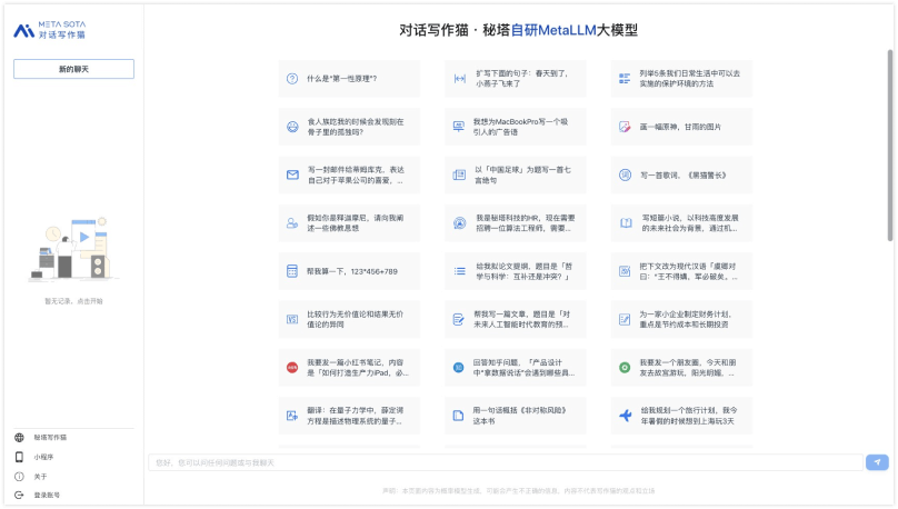 国内团队研发的中文智能对话工具,基于自研MetaLLM大模型。凭借在AI写作领域的技术积累,该产品在中文语料处理和多轮对话方面具有明显优势。