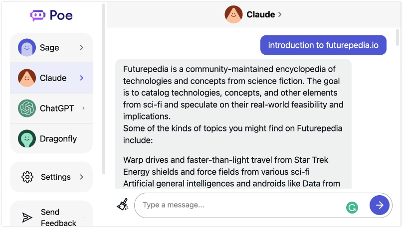 Quora推出的开放探索平台,集成了Sage、Claude等四种不同AI模型。用户可通过统一界面体验多种对话系统,网站和iOS应用均提供完整功能。