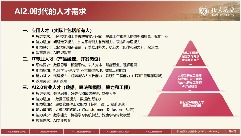 - 能力增加:掌握数据工程、底层软硬件工程、大模型范式(如Transformer、Diffusion、RL等)能力,能够从事AI前沿技术研发和创新。