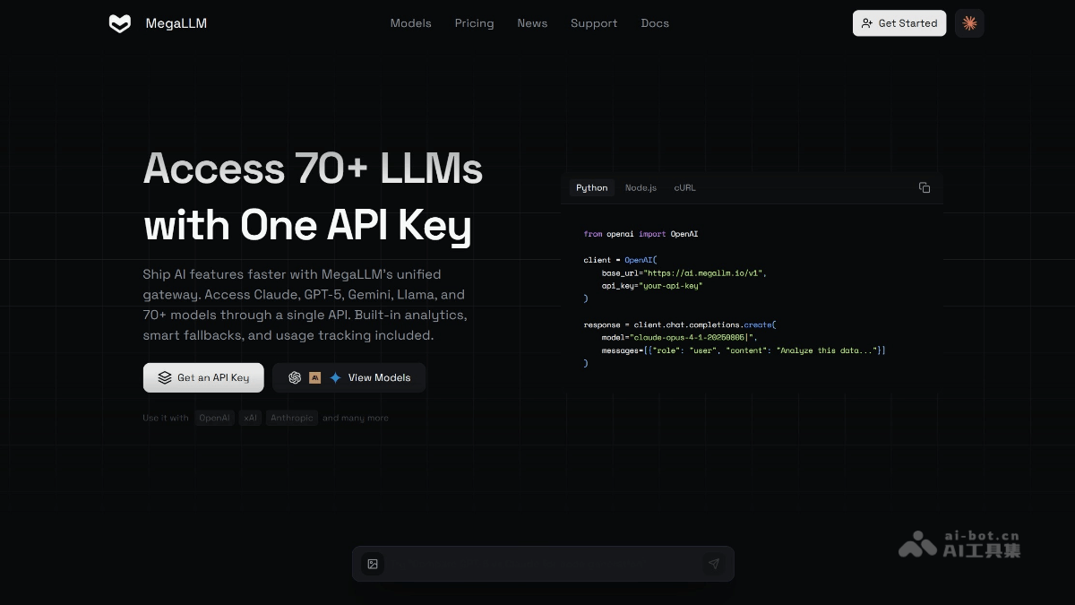 MegaLLM整合70余个大型语言模型,提供统一接口和自动故障转移功能,将复杂的模型集成工作简化为分钟级任务。