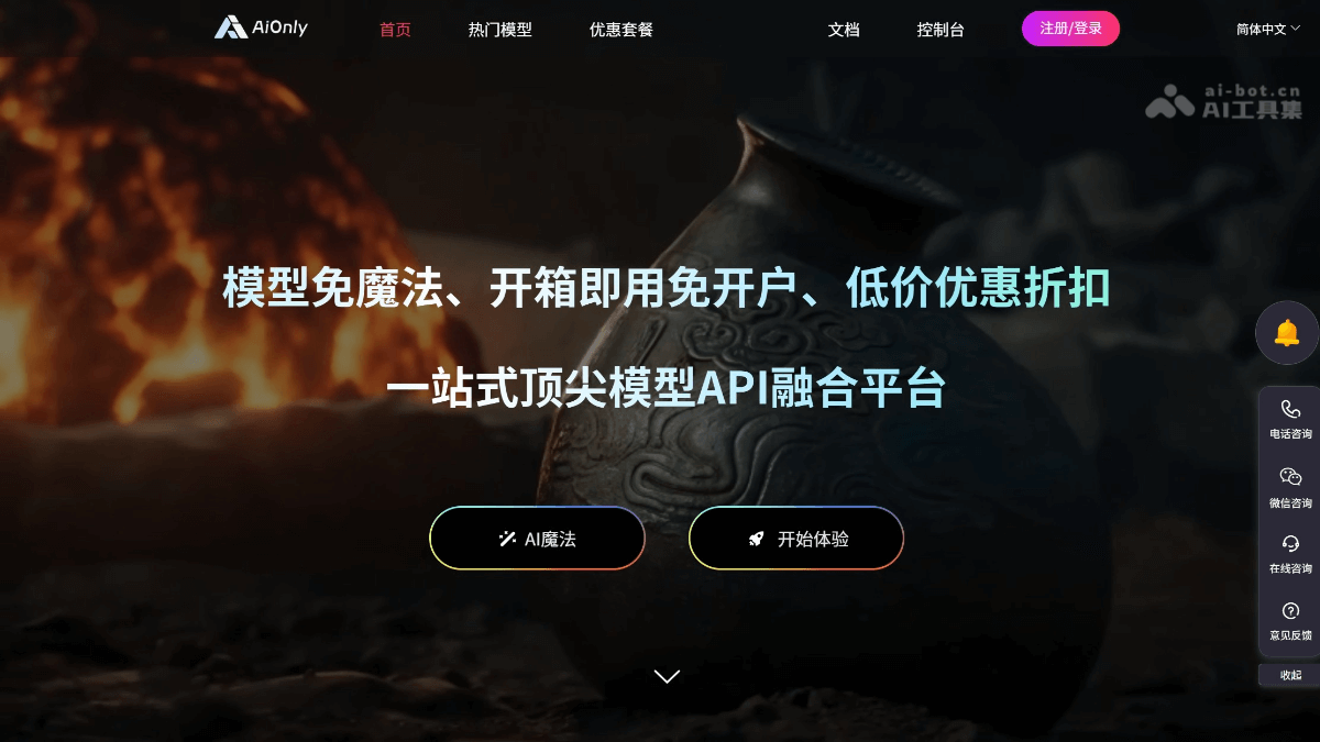AiOnly一站式AI大模型聚合平台高速稳定调用