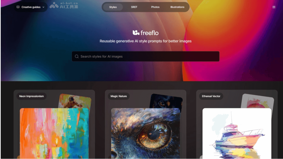 freeflo作为免费AI绘画灵感库,专为创意工作者设计,提供丰富风格提示词与SREF代码,显著提升Midjourney等平台的创作效率。
