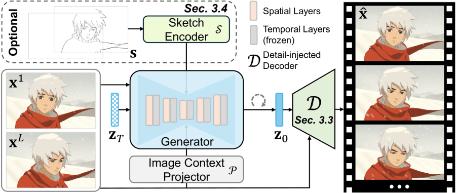 - 细节保持与增强:采用双参考3D解码器技术,在生成过程中精确保留图像细节。针对卡通动画特有的清晰线条和鲜明色彩,有效防止插值导致的模糊失真现象。