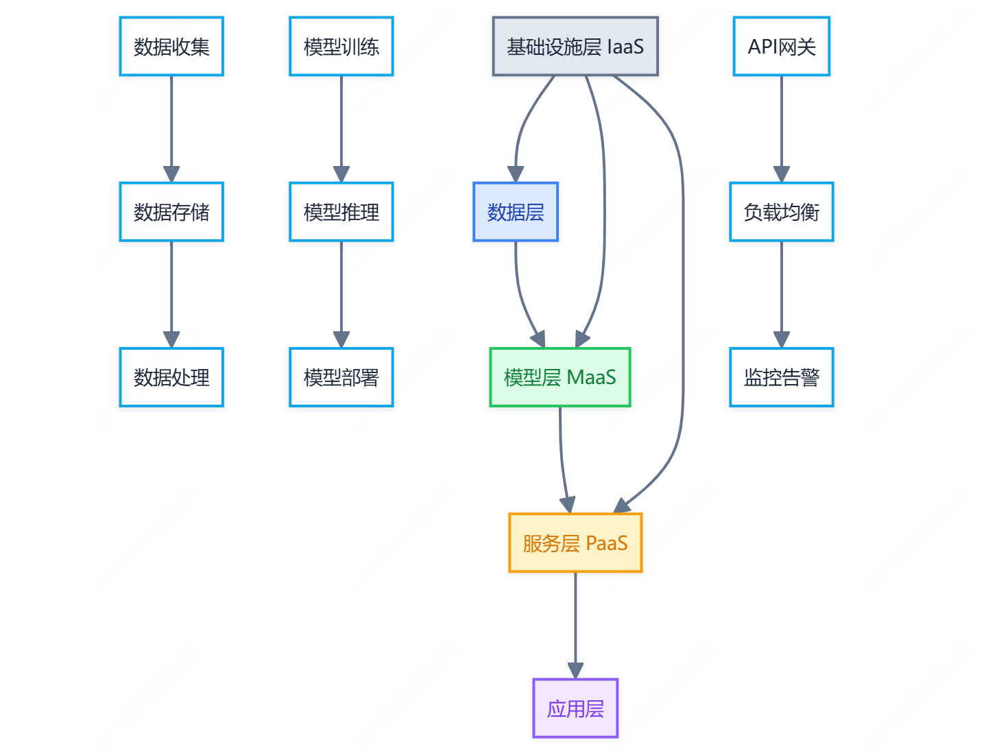 完整的系统包含数据层、模型层、服务层和基础设施层,各层协同工作支撑应用运行。