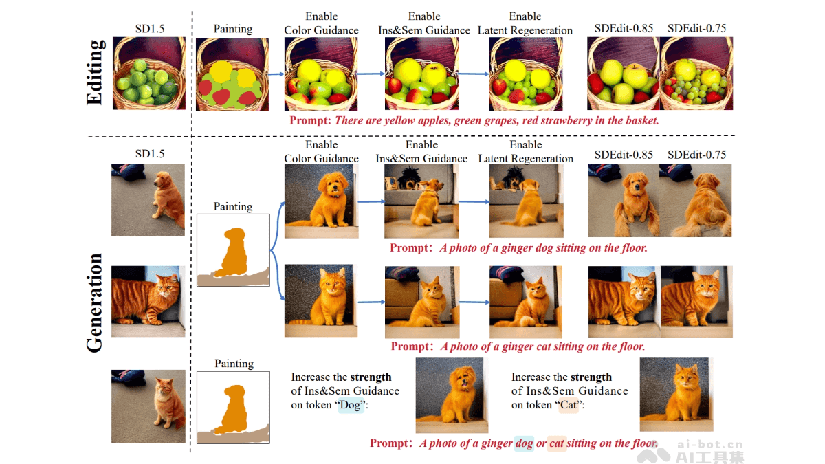 - 实例与语义控制:通过轮廓绘制和语义标注,精准定位特定对象及其属性。