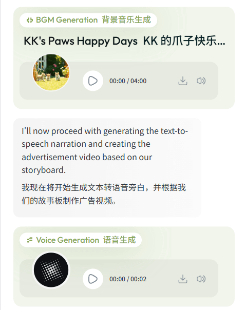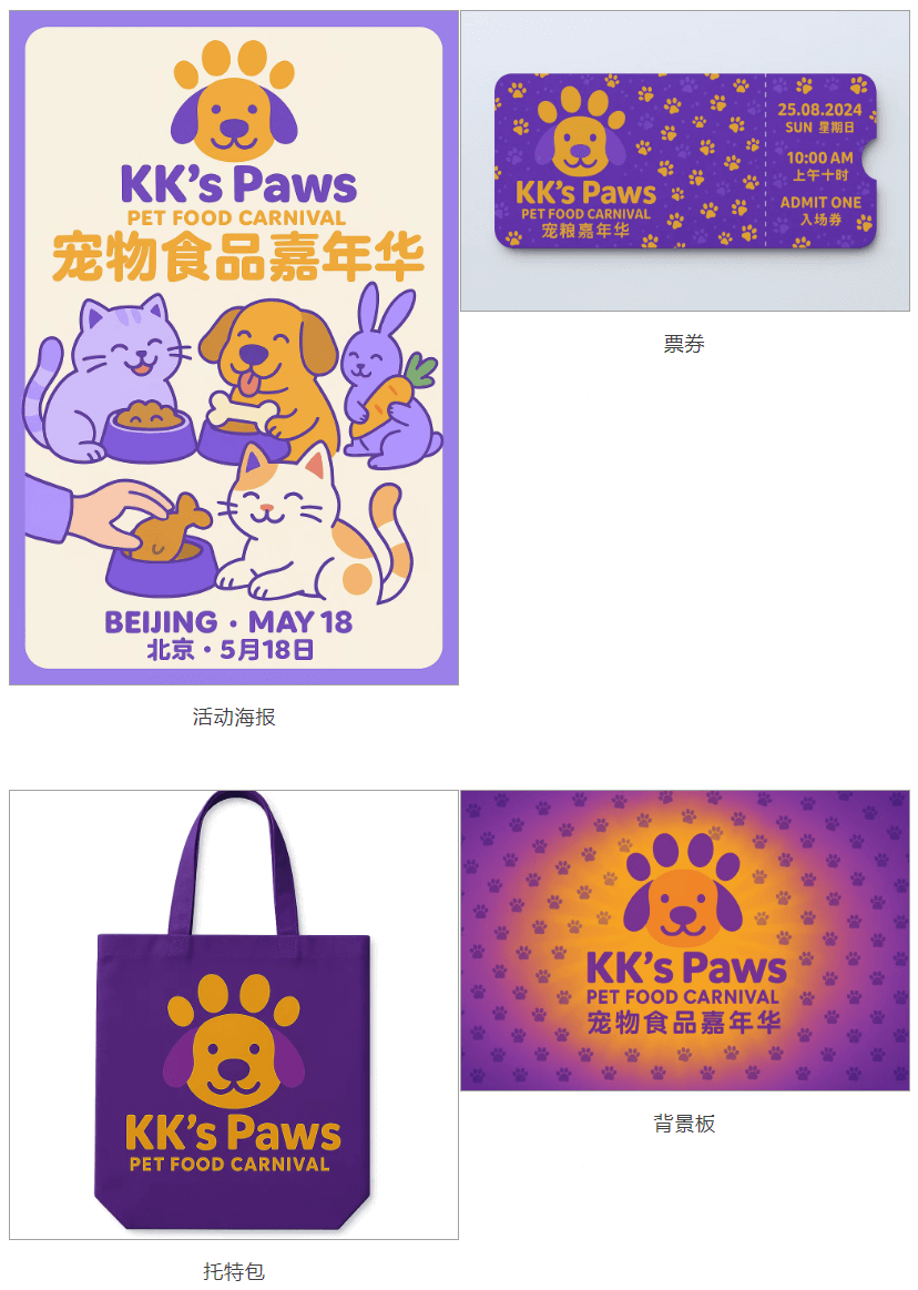 从品牌视觉设计到视频制作,都能一站式完成。以宠物品牌活动为例,系统可以: