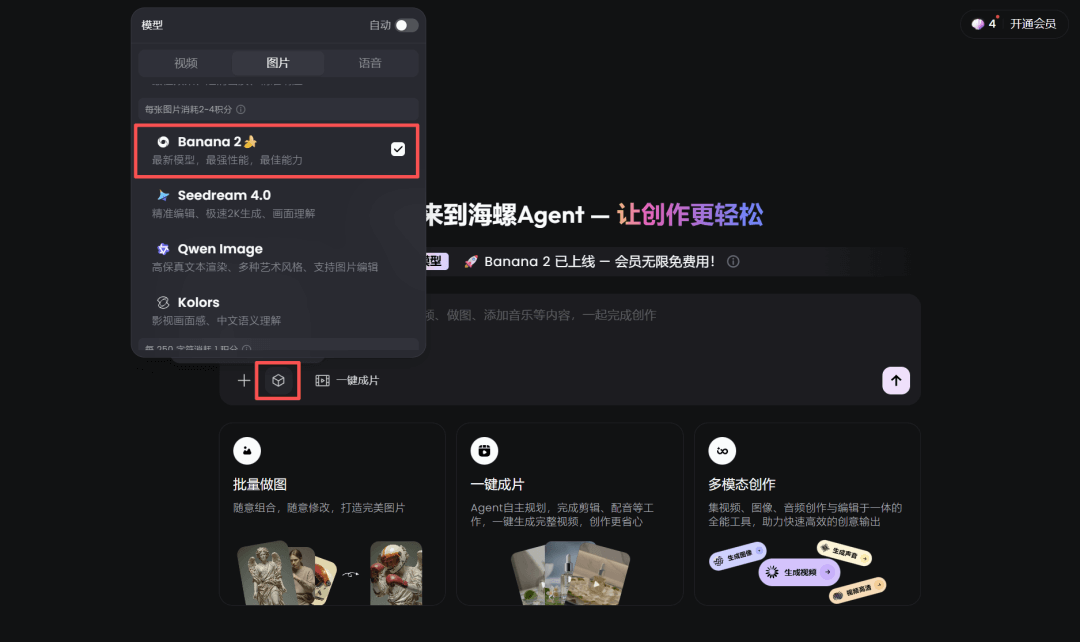 Flowith作为首推工具,集成了包括Nano Banana Pro在内的40余种AI模型。其最大优势在于无需特殊网络配置即可使用,且目前提供限时免费服务。用户可在对话框中选择图片生成模式,将模型切换为Nano Banana 2(即Pro版本),支持最高4K分辨率的图像输出。