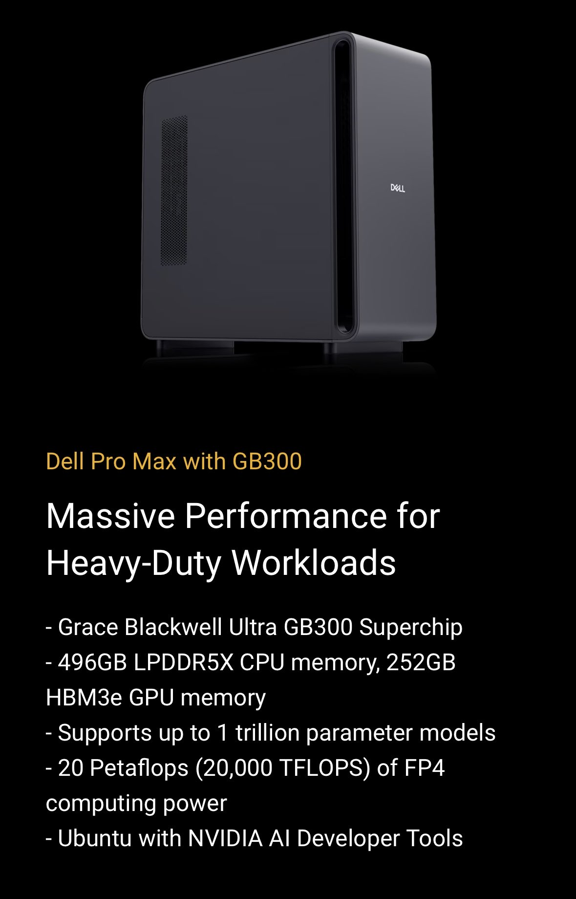 Andrej Karpathy通过社交媒体向英伟达致谢,透露其工作室已于本月6日收到这台设备。该工作站实际为戴尔生产的Dell Pro Max with GB300版本,即DGX Station GB300的厂商定制款。
