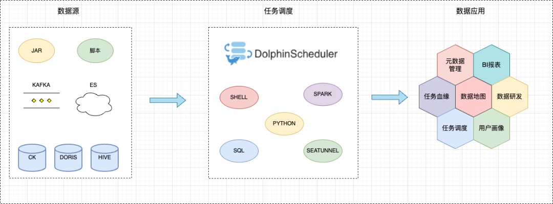 平台支持Spark、Shell、SQL等多种任务类型,为元数据管理、BI报表等下游应用提供数据支撑,全面满足不同业务场景需求。