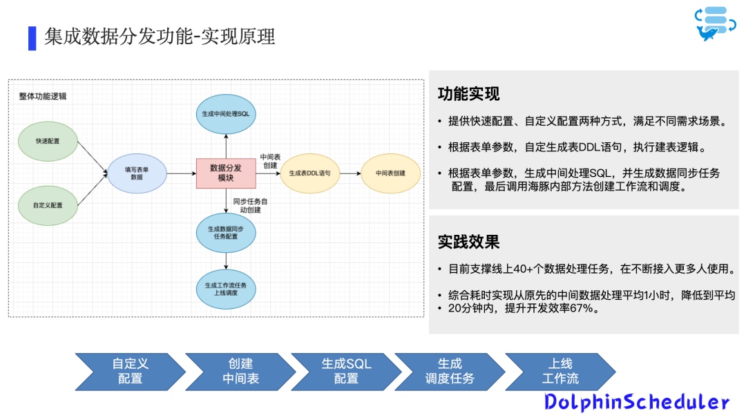 核心思路是实现中间表创建、同步配置生成和调度任务创建的自动化流程,提供一站式数据处理解决方案。