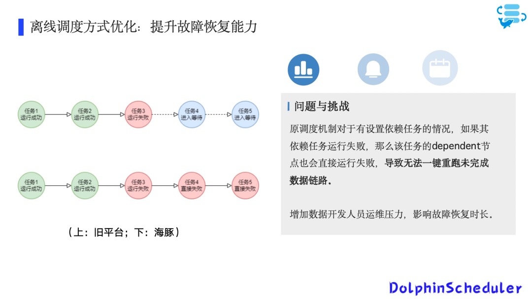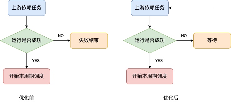 改进DependentExecute类的状态处理逻辑,将失败依赖任务状态调整为等待,实现数据链路一键恢复功能,大幅降低人工干预需求。
