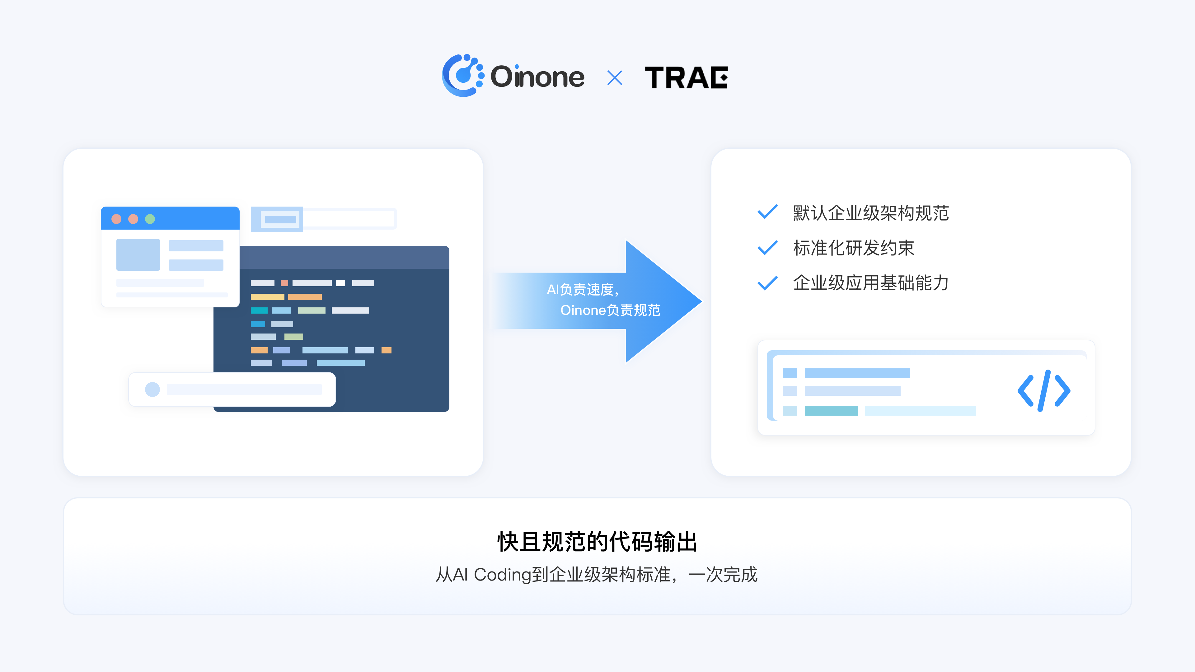 AI编码工具正在改变软件开发方式,但快速生成的代码往往缺乏规范。Oinone与TraeCN深度合作,让开发者一键获得既快速又规范的代码输出。