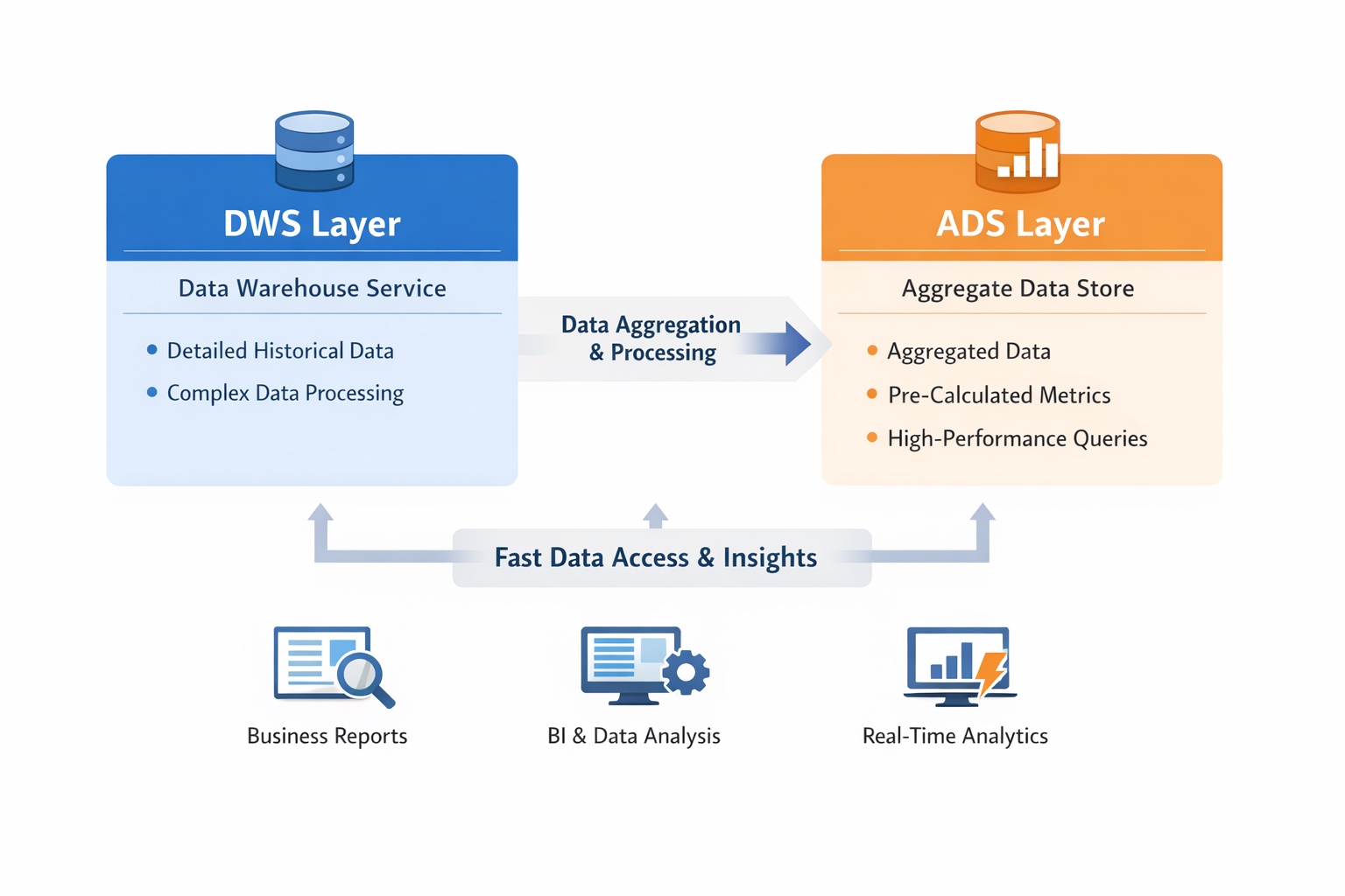 当各部门都拥有独立ADS表时,同名指标对不上、重复计算等烟囱化问题将大量消耗团队时间。DWS通过沉淀高频维度聚合结果、构建主题宽表和统一指标口径,将分散计算前置到离线层,显著提升查询性能和成本控制。