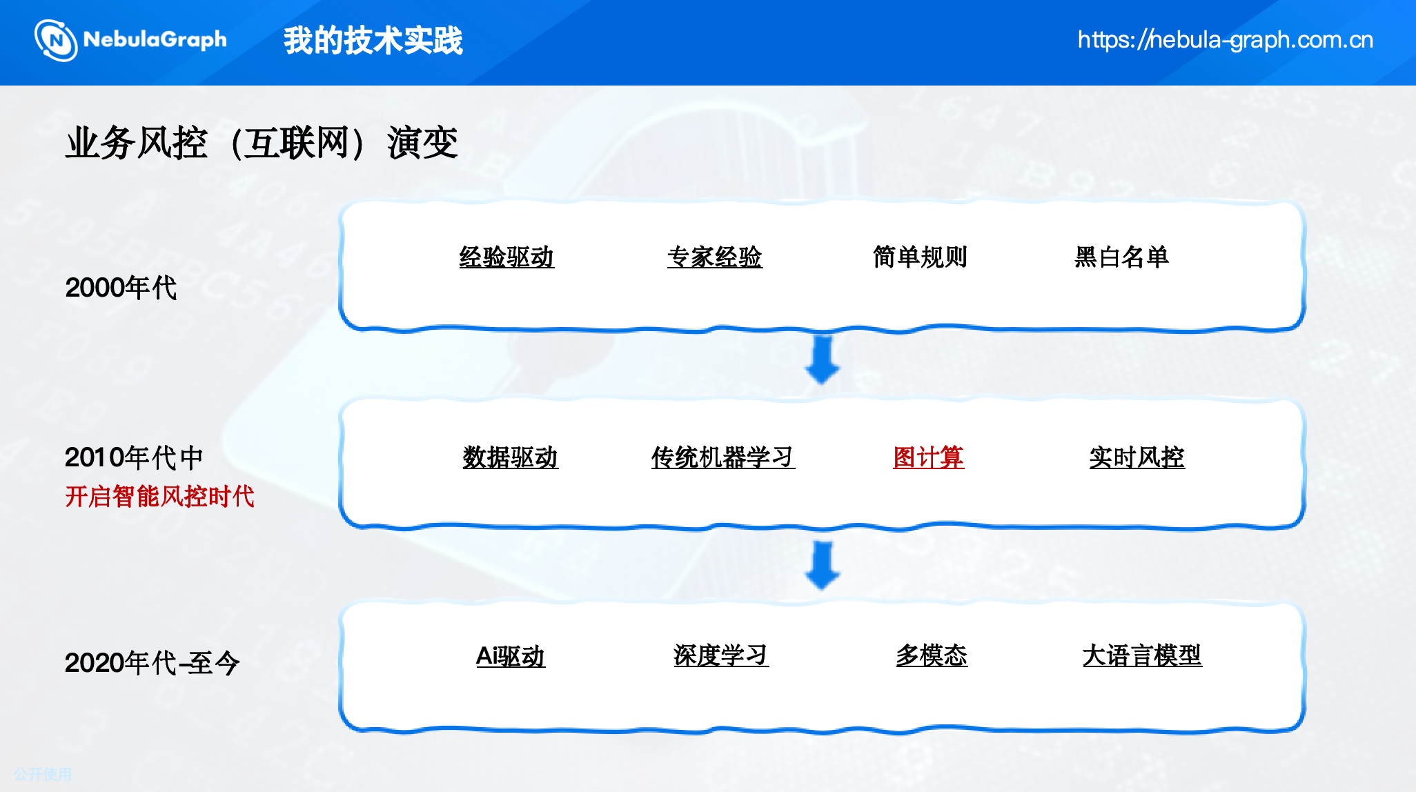 传统的风控体系经历了从经验驱动(黑白名单、简单规则)到数据驱动(传统机器学习),再到AI驱动(深度学习、图计算)的演变。