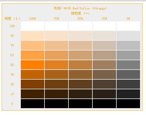 - <thcolspan="5">色相:H=30Red-Yellow(=Orange)th>