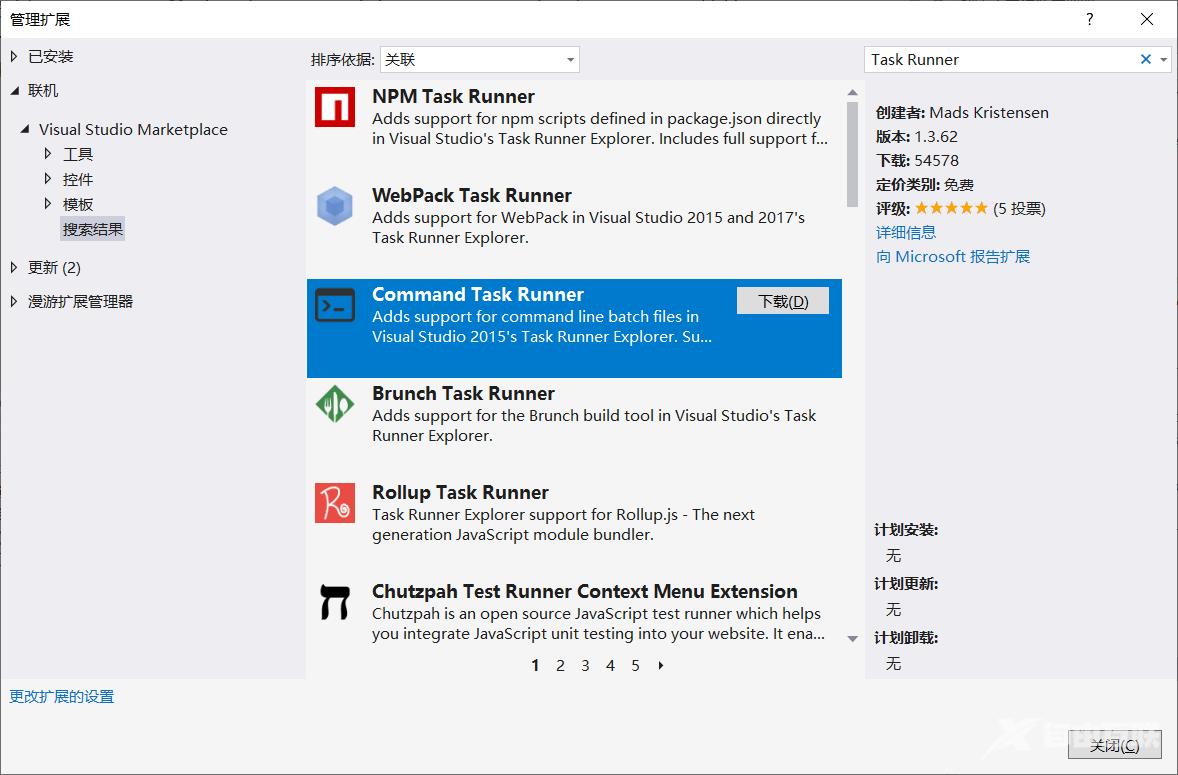 下载并按照扩展”Command Task Runner“
