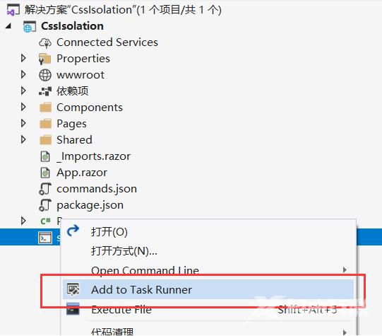 很多时候,我们可能会使用SCSS或LESS来编写样式文件,Blazor原生并不支持这些预处理器,我们可以使用任务运行程序资源管理器来在项目生成前编译SCSS或LESS,或者是使用一些第三方的库来支持,比如微软官方所提到的Delegate.SassBuilder。我试用了下Delegate.SassBuilder,可能由于我的使用方式不对,CSS文件的生成貌似是晚于项目生成的,无法在第一次生成程序时对CSS文件进行编译,接下来我将分享另外一种方式,即使用”任务运行程序资源管理器“。