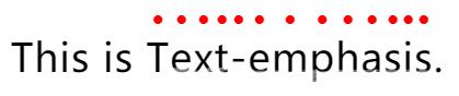 text-emphasis 包含了 text-emphasis 和 text-emphasis-position,允许我们在文字上方或者下方添加不同的强调装饰以及不同的颜色。