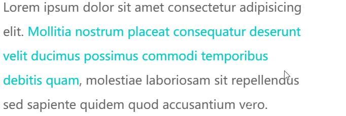 p { width: 600px; font-size: 24px; color: #666;}a { background: linear-gradient(90deg, #0cc, #0cc); background-size: 100% 3px; background-repeat: no-repeat; background-position: 100% 100%; color: #0cc;}使用 background 模拟文字的下划线效果,效果图如下: