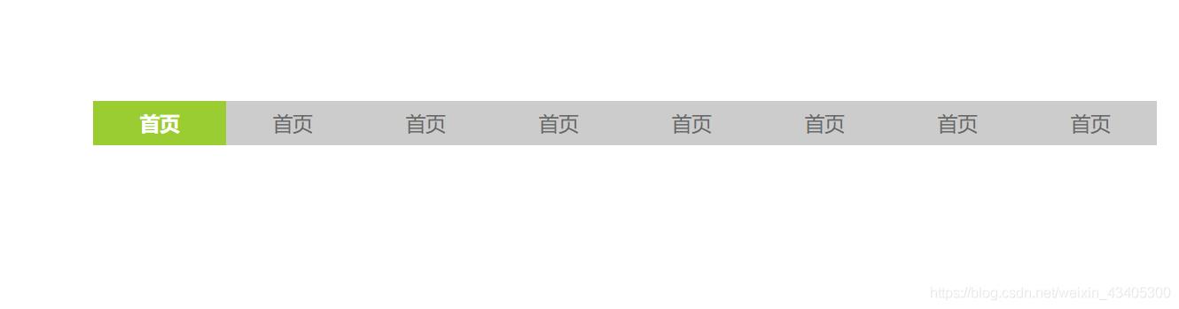 使用html+css实现简易导航栏;**要求:**将导航栏分成八个小部分,并在鼠标放上并不点击,导航栏背景颜色显示为黄绿色;