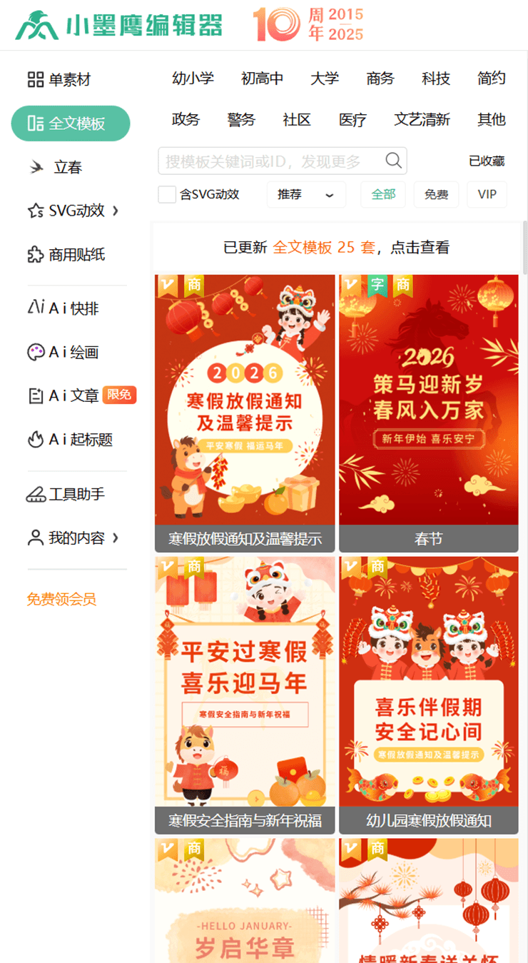 相比其他编辑器仅提供几千套模板,这里拥有25万+素材资源: