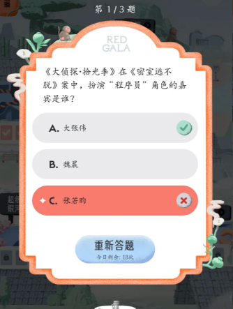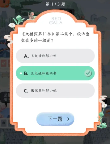 REDGALA中可以参与大侦探的答题活动,需要回答出在大侦探拾光季与大侦探第11季中的各个题目的答案,下文为大家列举出这些大侦探答题中的题目以及对应的正确答案内容!