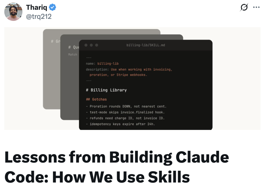 - 博客标题:Lessons from Building Claude Code: How We Use Skills