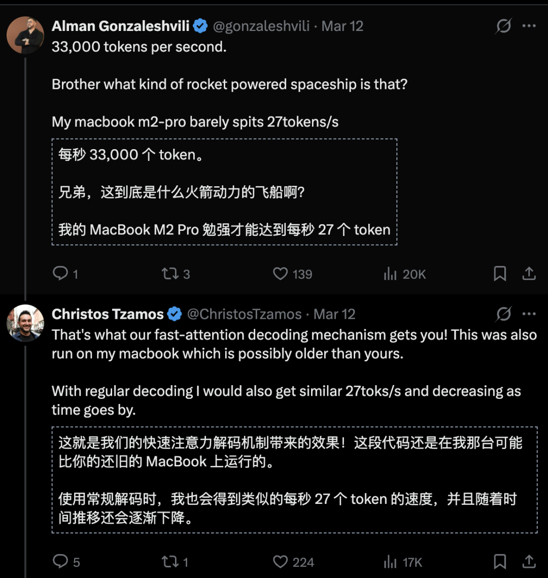 要知道MacBook M2 Pro的解码速度才每秒27个智元(token),每秒33000个智元(Token)堪称火箭般的速度,让人难以想象!