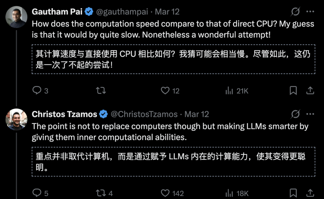 当然,用LLM的计算速度无法与CPU相比,这项研究的关键意义在于赋予LLM内在计算能力,真正教会AI算数,让它更聪明。