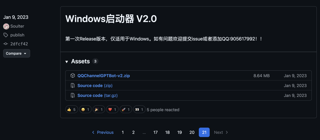 2023 年 1 月 9 日,Soulter 在 GitHub 上发布了第一个版本。