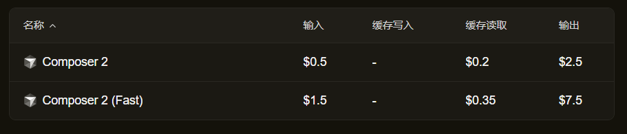 标准版定价每百万输入智元(token)仅0.5美元,输出2.5美元,比上一代Composer 1.5的3.5/17.5美元便宜了86%。