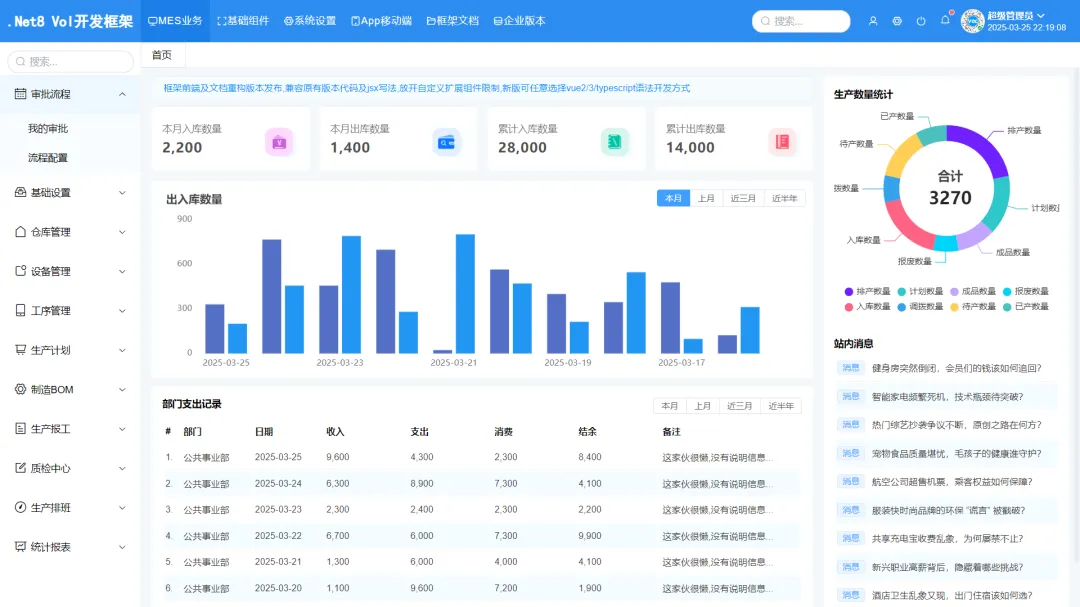 Vue.NetCore 是一款基于Vue(提供Vue2/Vue3版本)和.Net Core前后端分离、开源免费(MIT License)、强大、跨平台的快速开发框架,并且框架内置代码生成器(解决重复性工作,提高开发效率),支持移动端(iOS/Android/H5/微信小程序)。