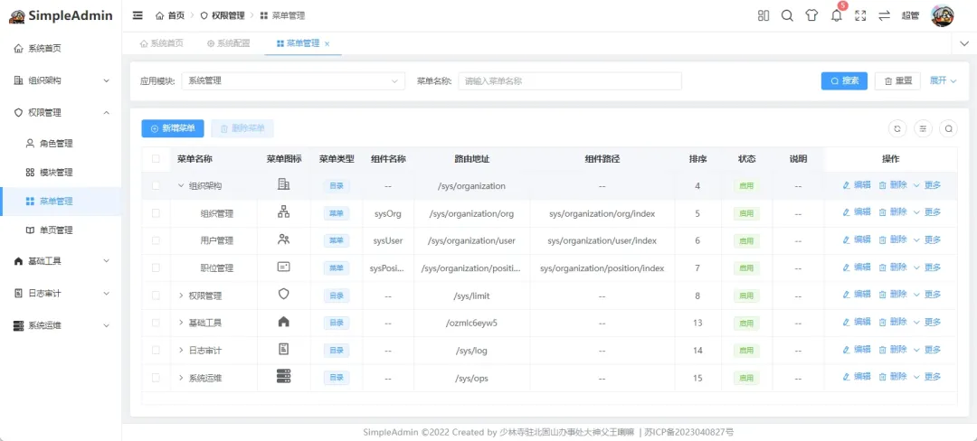 开源地址: https://gitee.com/dotnetmoyu/SimpleAdmin