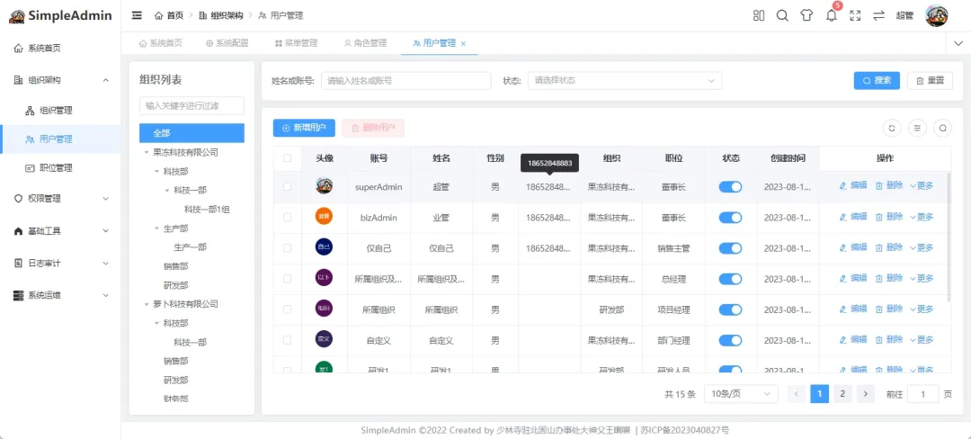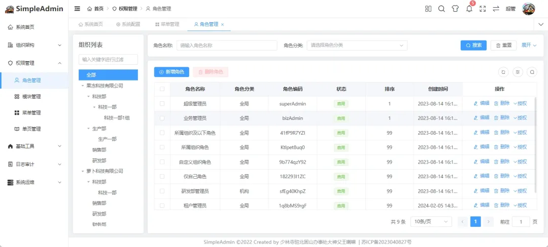 SimpleAdmin是一个小而美的通用业务型后台管理系统,专为解决开发过程中的痛点难点而生。Vue3+Vite+Vuex+JS,并在此基础上增加更人性化功能,后端基于.NET6/7+Furion,ORM采用Sqlsugar+单例模式,插件式开发。采用RBAC+多机构的权限管理模式,实现全网最灵活的接口级别数据权限控制,集成国密加解密,导入导出、导入导出、批量修改等常用插件。后端代码注释覆盖率>90%,并配备超牛皮的代码生成器和超详细的手摸手教学文档,非常适合二次开发。