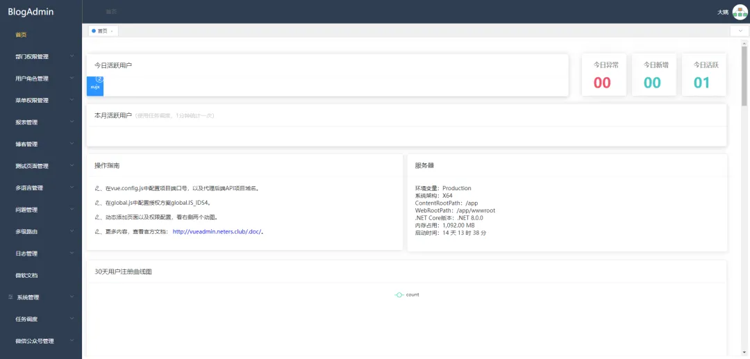 RuYiAdmin 一款基于 .NET 9 构建的企业级、前后端分离、开源(Apache License) Web RBAC 快速开发框架,具有灵活的架构设计和强大的功能,适用于快速开发高性能的企业级应用,具有低代码、跨平台、分布式、多线程和高性能等特色。